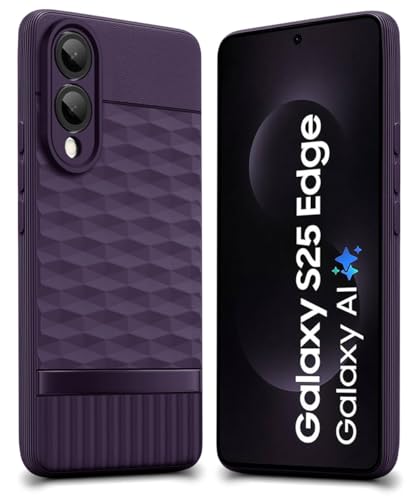 WOW IMAGINE Back Cover for Samsung Galaxy S25 Edge 5G with Hexa Cube Design | Ultra Slim Soft Rubberised Case | Inner Velvet Fabric | Matte Silicone Flexible Mobile Case | Camera Protection – Purple