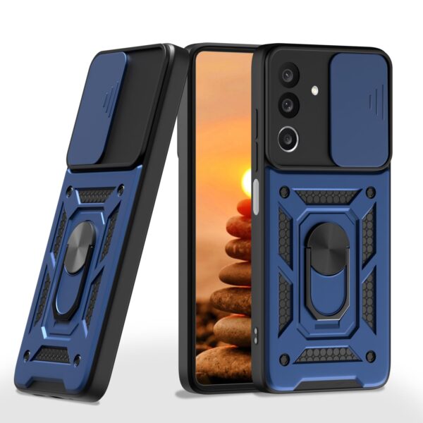 Pikkme Back Cover for Samsung Galaxy A26 5G | D10 Tough Armor | 360 Protection Case | Sliding Camera Shield Cover & Ring Holder Stand Bumper Case (Blue)