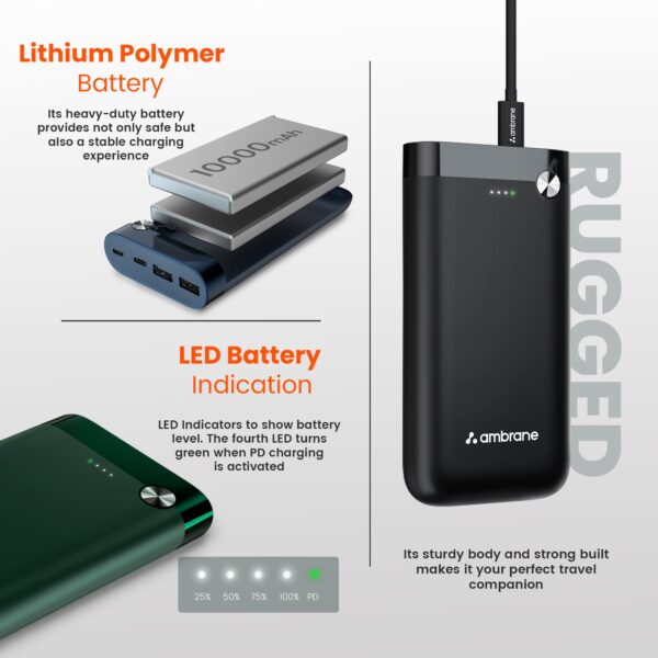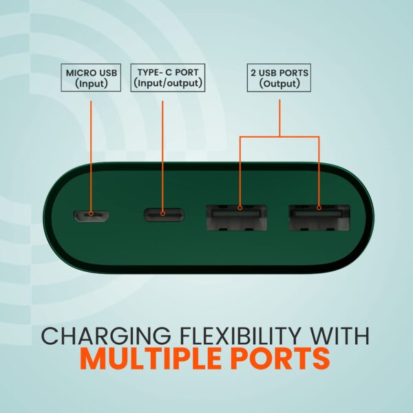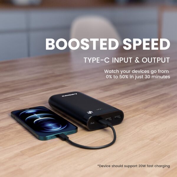 - 20W Fast Charging Input- The powerbank itself can get charged in 7 to 8 hours as it has Power Delivery Technology that supports 20W fast charging input via Type C port.