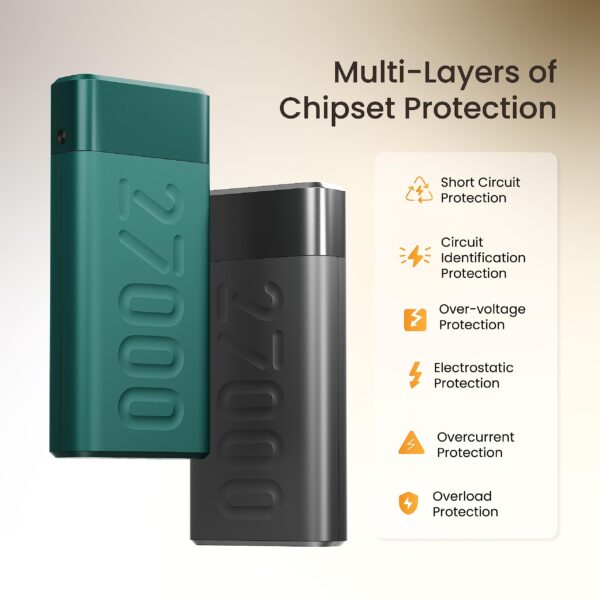 - Long-lasting Battery – With a lithium polymer battery of 27000mAh capacity, this powerbank can charge your devices multiple times.