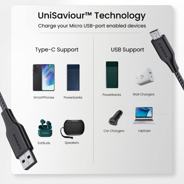 - Universal Compatibility – It is compatible with all Micro USB enabled devices including Android smartphones, tablets, PC peripherals and other micro USB compatible devices.