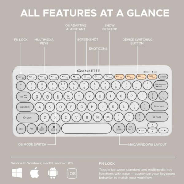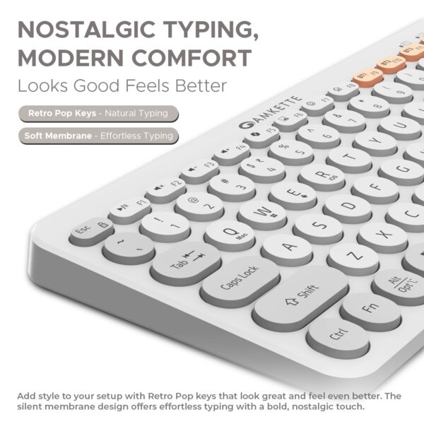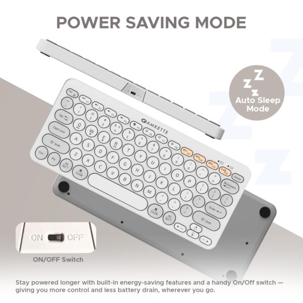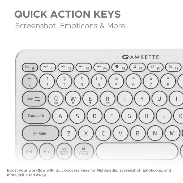 Amkette New and Improved Optimus BT 4 in 1 Multi Device Wireless Keyboard/Bluetooth Keyboard | One Click Device Switching and AI Access for Windows, MacOs, Android and iOS, Dual OS Layout (White)