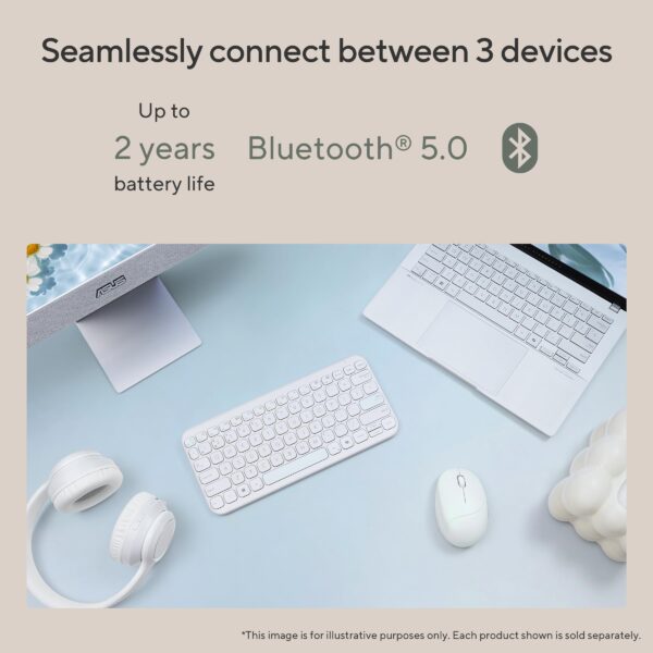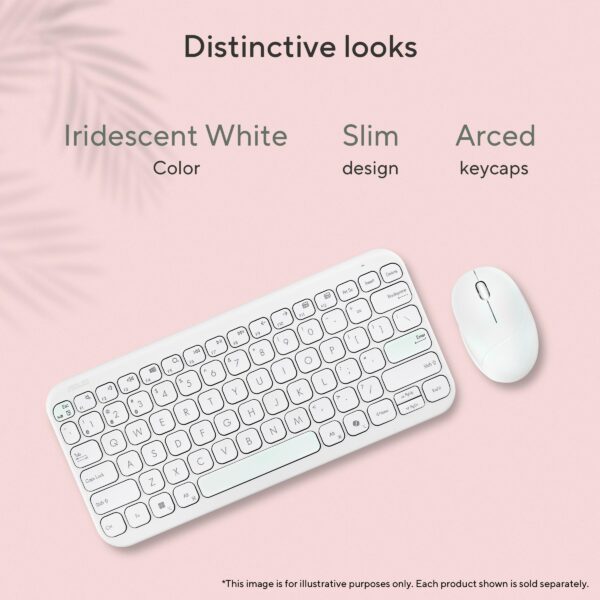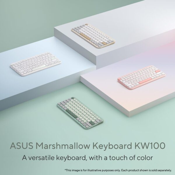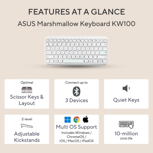 ASUS Marshmallow KW100 Wireless Keyboard – Iridescent White | Silent Scissor Keys, Compact Design, 2-Year Battery Life, Compatible with Windows/Mac/Chrome/iOS/with Dedicated Copilot Key