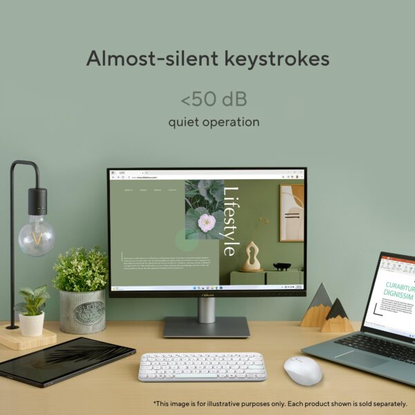 - Compact & Quiet Design – Slim profile with arc-shaped scissor keycaps and