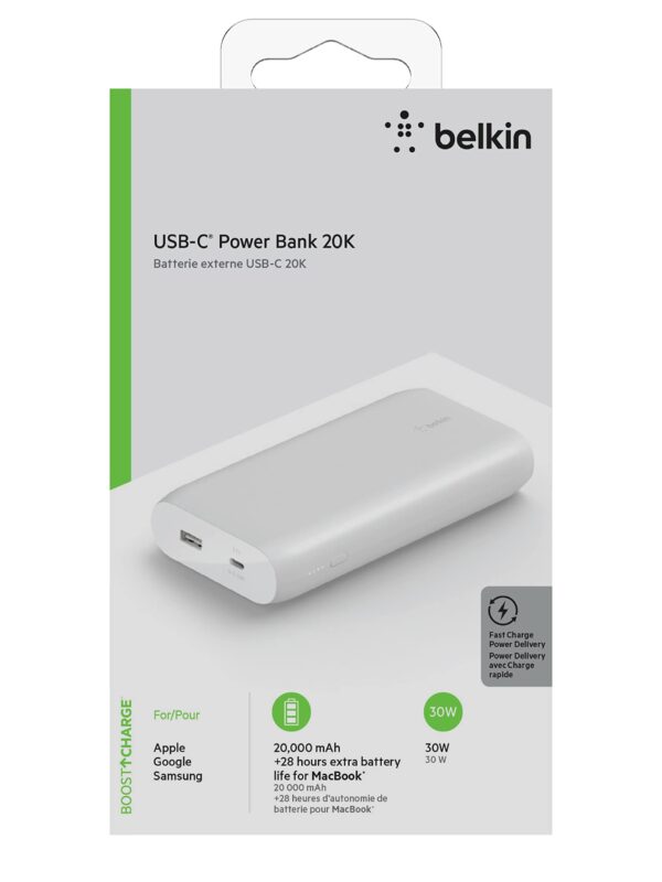 Belkin 30W 20000mAh Power Bank | Super Fast Charging | Portable Charger for iPhone 16, iPad Pro, Samsung Galaxy S25, Google Pixel and More | 2 Years Warranty | White