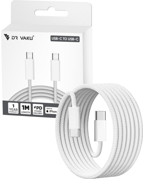 DR VAKU® 1 Meter Nylon Braided Type C to Type C Cable for iPhone 16/16 Plus/16 Pro/16 Pro Max, iPhone 15/15 Plus/15 Pro/15 Pro Max, Samsung Galaxy S24/S23/S22/S21 FE Laptop & Other Android Devices