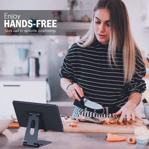 ELV Aluminum Adjustable Mobile Phone Foldable Holder Tabletop Stand, Dock Mount for All Smartphones, Tabs, Kindle, iPad (Black)