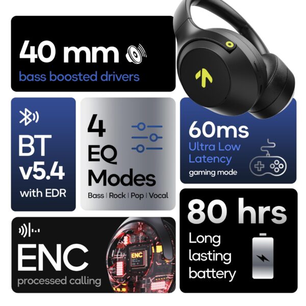 Details: Experience the world differently with the Flex Headset! Featuring 40mm bass-boosted neodymium drivers with BoomX™ technology for supreme bass and crystal-clear audio. Its foldable design and adjustable headband provide maximum comfort, while ENC-tuned mics and ZEN™ technology ensure superior call clarity. With Bluetooth 5.4 and Blink & Pair™ technology, enjoy the fastest pairing and ultra-low latency gaming with a 60ms Combat™ mode. The 80-hour battery life and fast charging (10 minutes for 5 hours of play) keep the music going. Built to withstand the elements with IPX5 water resistance, the Flex Headset offers wireless freedom and premium sound for gamers and audiophiles alike.