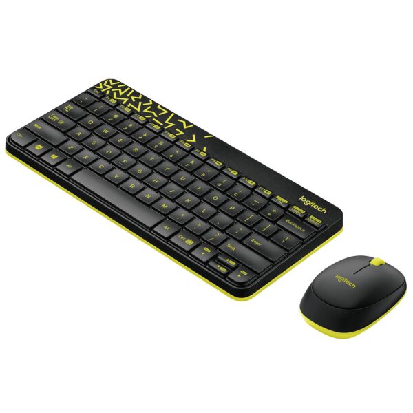 Logitech MK240 Nano Wireless USB Keyboard and Mouse Set, 12 Function Keys 2.4GHz Wireless, 1000DPI, Spill-Resistant Design, PC/Mac, Black/Chartreuse Yellow