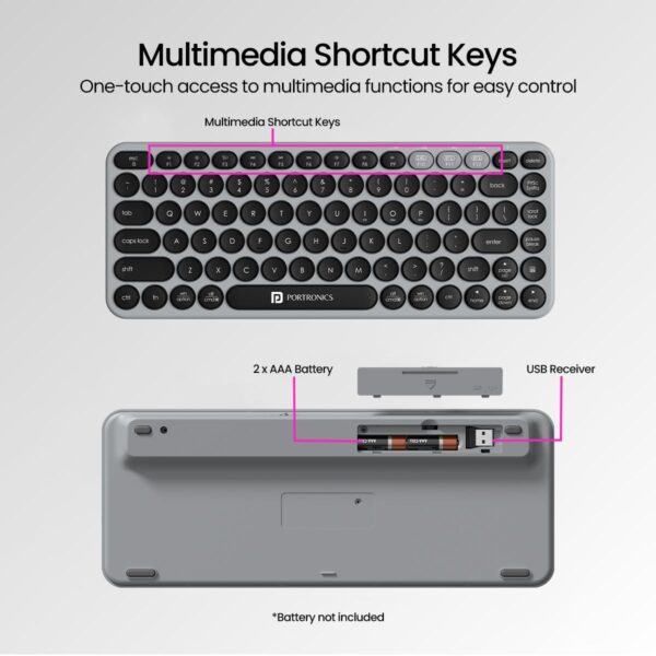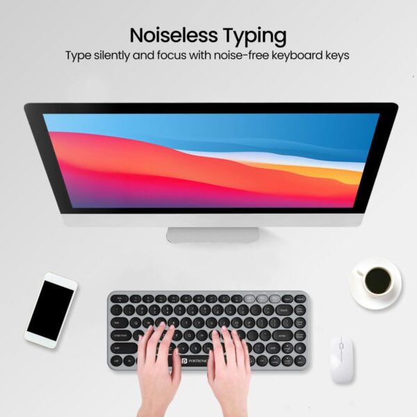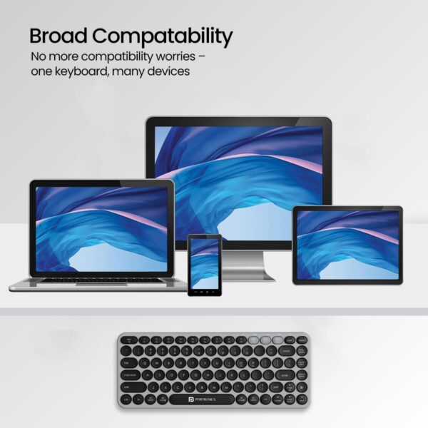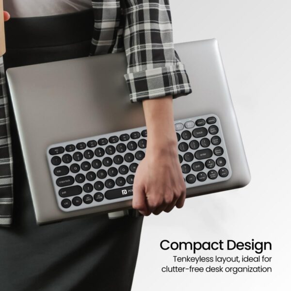 Portronics Bubble 2.0 Wireless Keyboard with Bluetooth + 2.4 GHz Receiver, Connect 3 Devices, Compact TKL Size, 10m Working Range, Function Shortcut Keys, for Laptop, PC, Smartphone, Tablet (Grey)