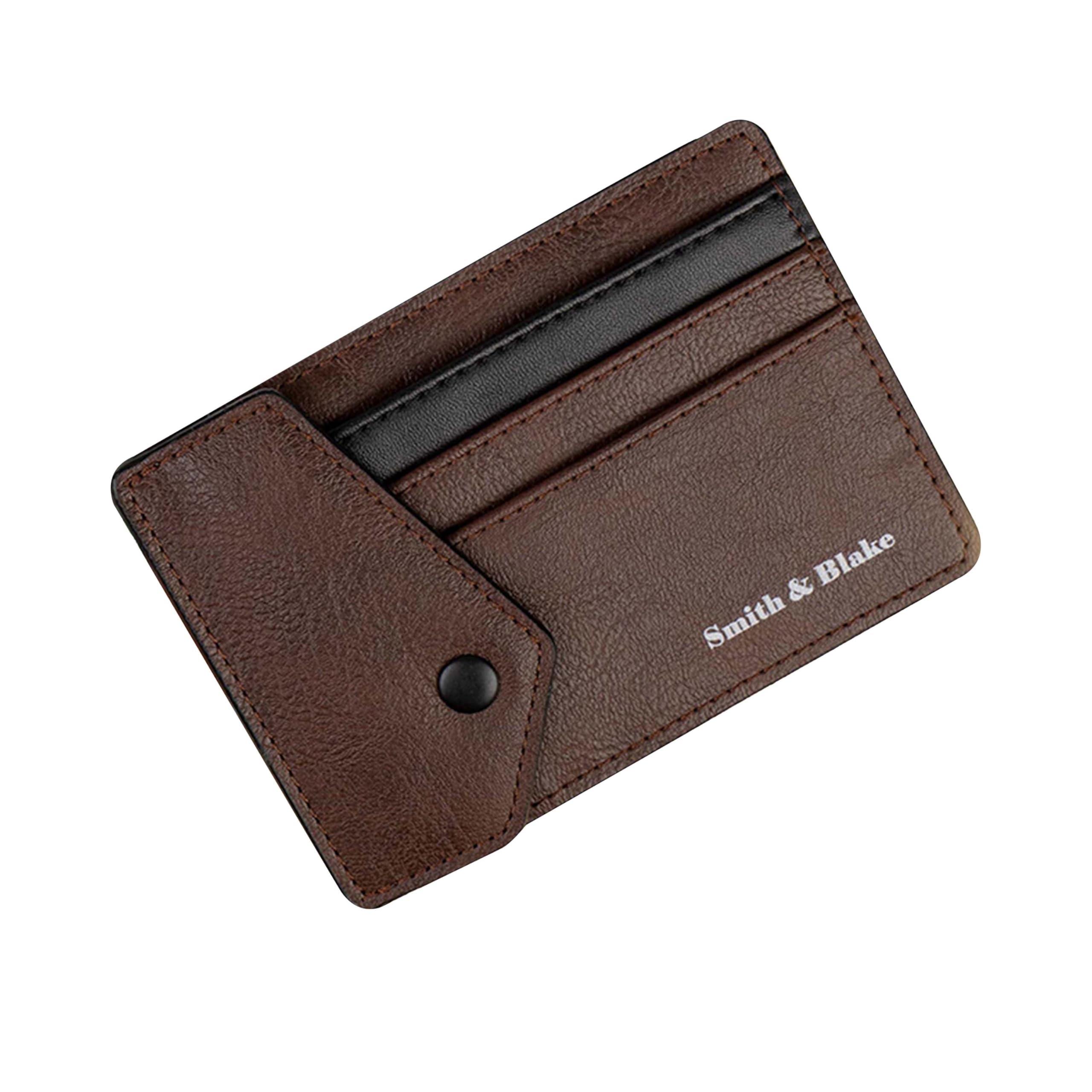 Smith & Blake – Credit Card Holder Wallet for Men and Women -3 ATM Card Slots – Snap Button Pocket – Back Pocket – Brown Premium Leatherette – Prospero (Brown)