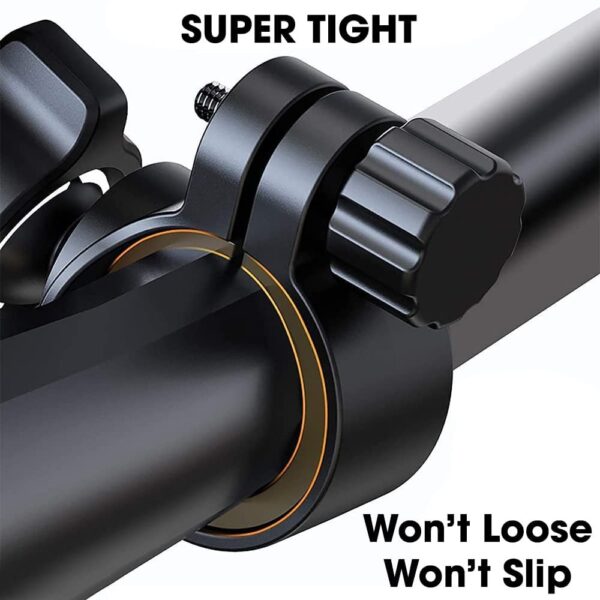 - ✅【Fit Most Handlebars】: Easily attach and detach in seconds from handlebars with a diameter size of 18-43mm. Widely used on bicycles, motorcycles, strollers, treadmills, shopping carts, scooters, wheelchairs, and other round handlebar. You can even use it as a phone stand on the desk for movie-watching.