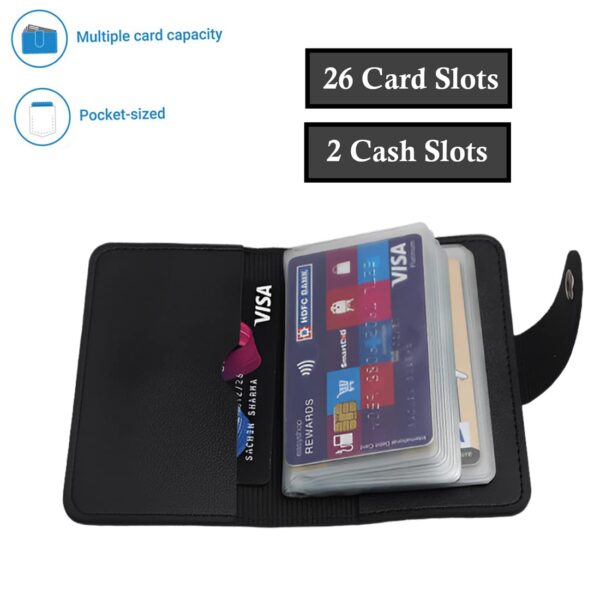 - ✔PU Card Holder Can Easily Hold 26 Credit/ Debit Cards /Id Cards and Business/visiting /Name Card and 2 Cash Pocket.