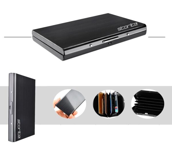 - Number Of Card Slots: Stores 6 Debit/Credit Bank Atm Cards. Easy Click Button For Opening And Closing,Latches Safely And Securely When Not In Use .