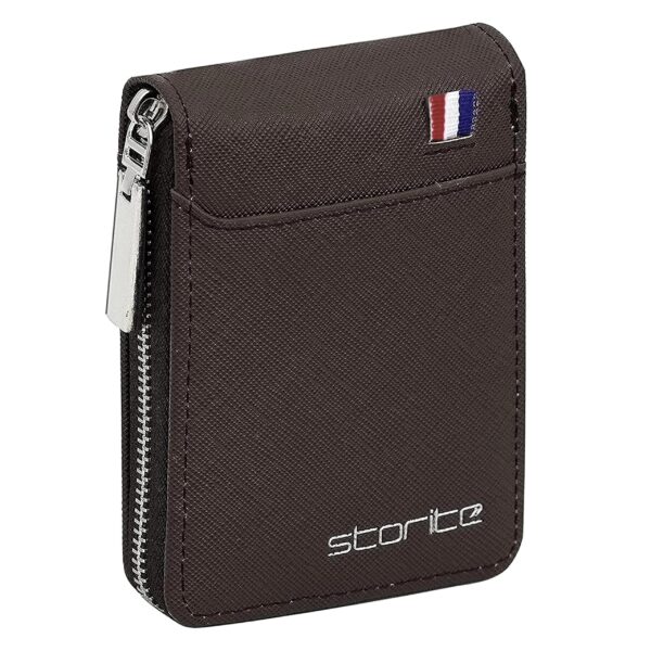 Storite PU Leather 9 Slot Vertical Credit Debit Card Holder Money Wallet Zipper Coin Purse for Men Women (Chocolate Brown – 11.5 x 2 x 8 cm)