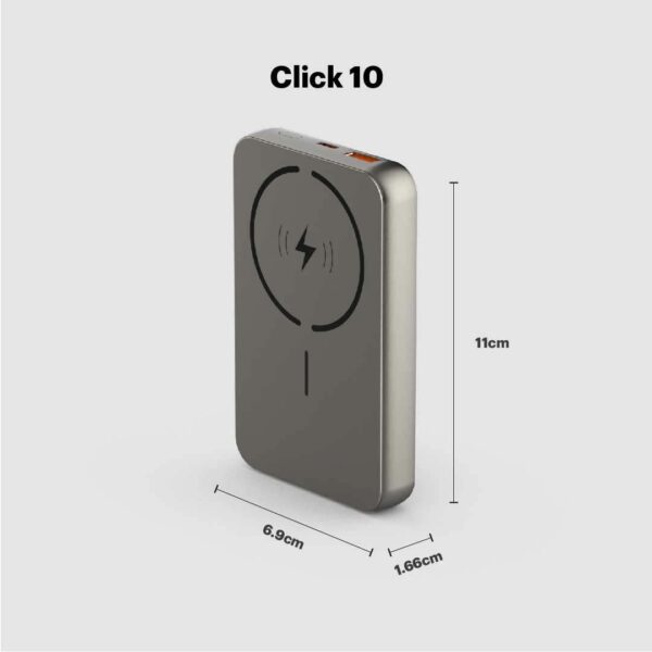 - [Click to Charge!]: Introducing a slim magnetic wireless powerbank in Natural titanium finish, perfect to the stick to the back of your iPhone and charge! Featuring 15W of Magnetic Wireless charging, the Click is the perfect companion for your iPhone 16/15/14/13/12. Simply Click on the back on the iPhone and start charging!