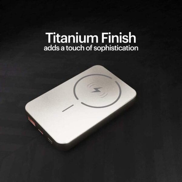 Stuffcool Click 10000mAh Slim Magnetic Wireless Powerbank Natural Titanium Finish Perfect for iPhone 16,15,14,13,12 with Led Display and 20W Fast Wired Charging – Charges iPhone 50% in 30 mins