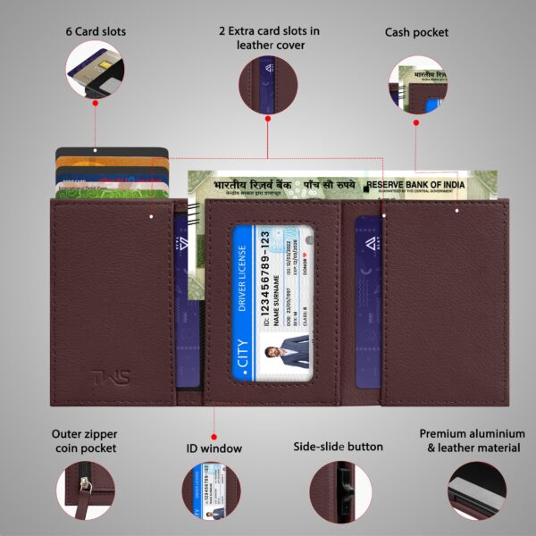 The Wallet Store Urban Pop RFID Protection Wallet | Pop-up Card Holder | Scan Proof Wallets for Men | Aluminium Case | Up to 8 Cards | Credit & Debit Card Holder (Brown)
