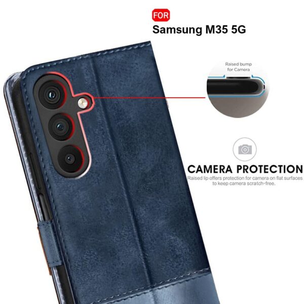 TheGiftKart Flip Back Cover Case for Samsung Galaxy M35 5G | Dual-Color Leather Finish | Inbuilt Stand & Pockets | Flip Back Case Cover for Samsung M35 5G (Faux Leather, Blue & Sky)