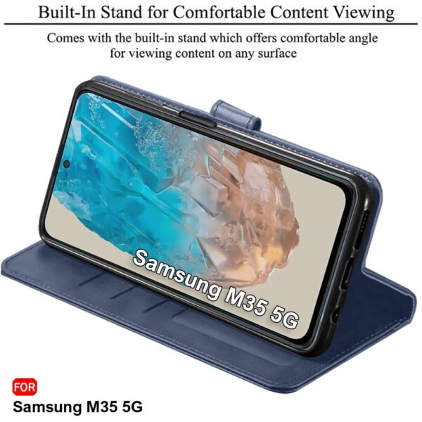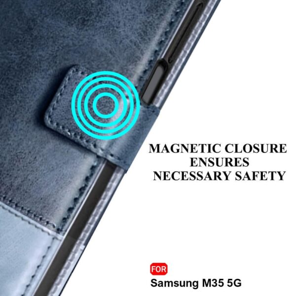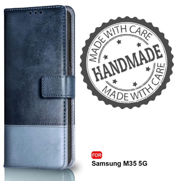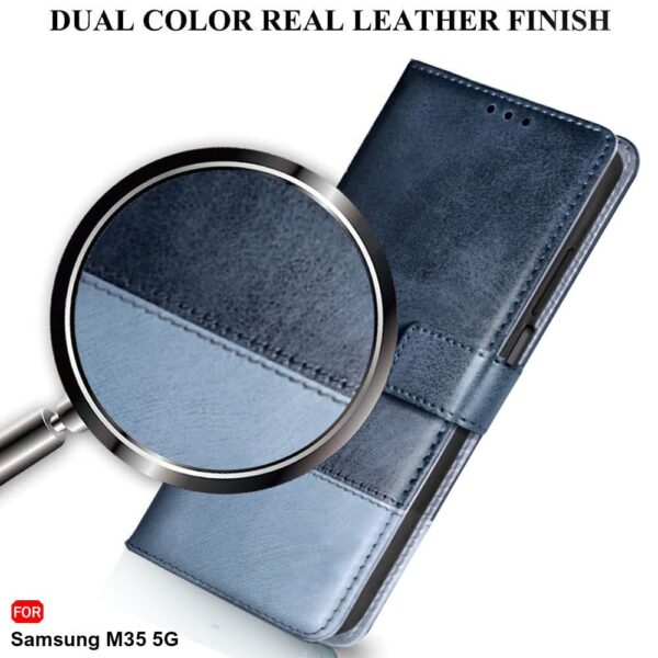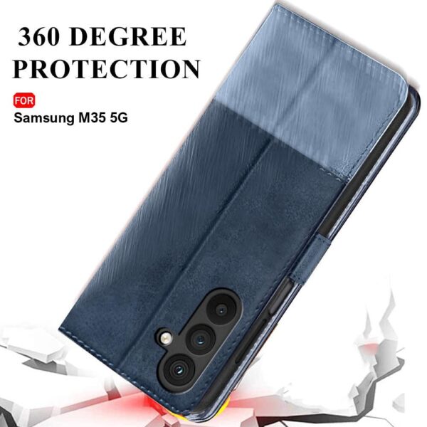 TheGiftKart Flip Back Cover Case for Samsung Galaxy M35 5G | Dual-Color Leather Finish | Inbuilt Stand & Pockets | Wallet Style Flip Back Case Cover for Samsung M35 5G (Faux Leather, Blue & Sky)