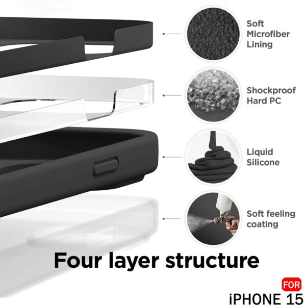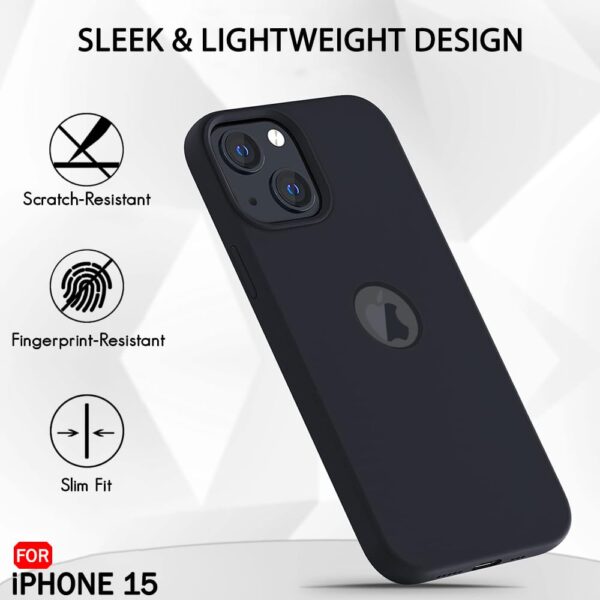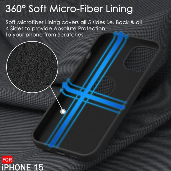 TheGiftKart Genuine Liquid Silicone Back Cover Case for iPhone 15 | Soft Micro-Fibre Lining Inside | Camera Protection Bump | Shockproof Back Cover Case for iPhone 15 (Silicone, Black)