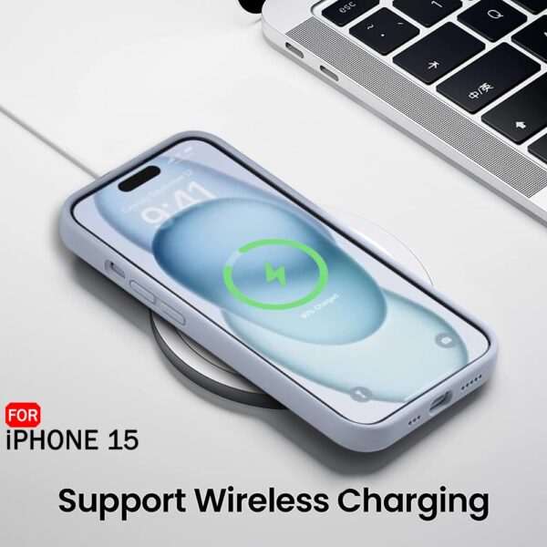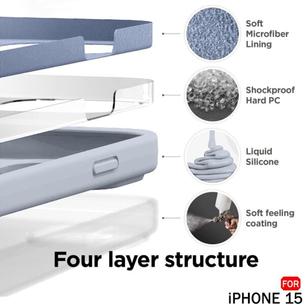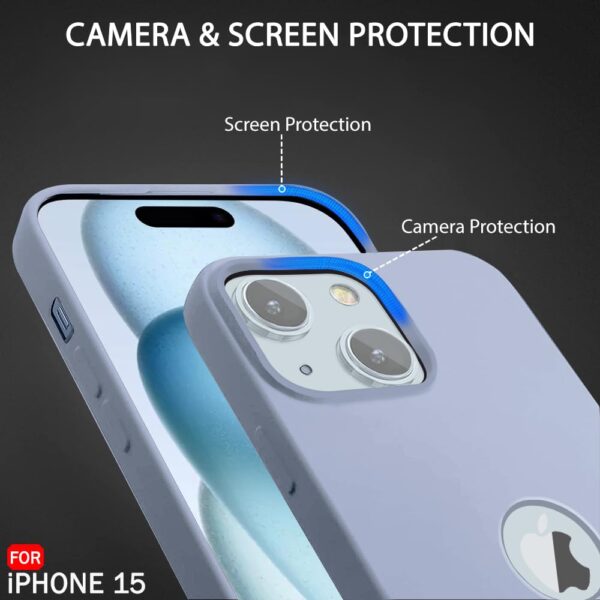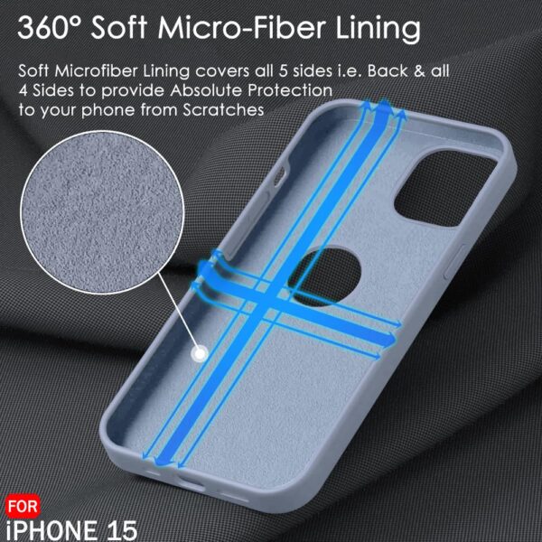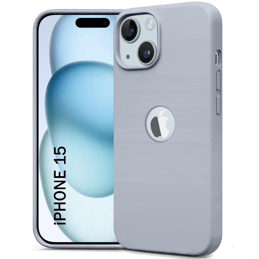 TheGiftKart Genuine Liquid Silicone Back Cover Case for iPhone 15 | Soft Micro-Fibre Lining Inside | Camera Protection Bump | Shockproof Back Cover Case for iPhone 15 (Silicone, Mist Blue)