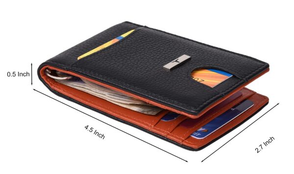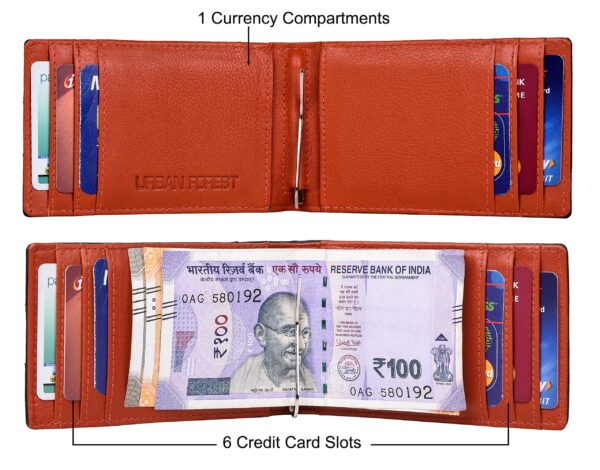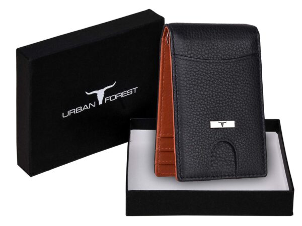 URBAN FOREST Eddy Black/Orange Money Clip Leather Wallet for Men – Minimal Leather Wallet for Men
