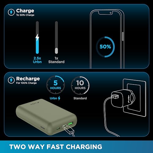- Two-Way Fast Charge: The URBN 20000 mAh Premium Black Edition Nano Power Bank features two-way fast charging, allowing you to charge your devices and the power bank itself simultaneously. Get the power you need when you need it most.