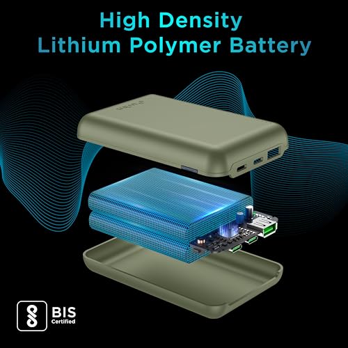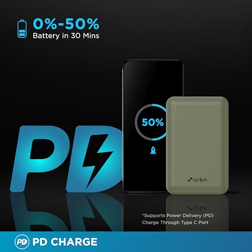 URBN 20000 mAh Premium Nano Power Bank | 22.5W Super Fast Charging | Smallest Power Bank | Dual Type C Power Delivery (PD) Output + 1 USB Output for Quick Charge | Two-Way Fast Charge (Camo)