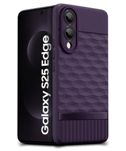 WOW IMAGINE Back Cover for Samsung Galaxy S25 Edge 5G with Hexa Cube Design | Ultra Slim Soft Rubberised Case | Inner Velvet Fabric | Matte Silicone Flexible Mobile Case | Camera Protection – Purple