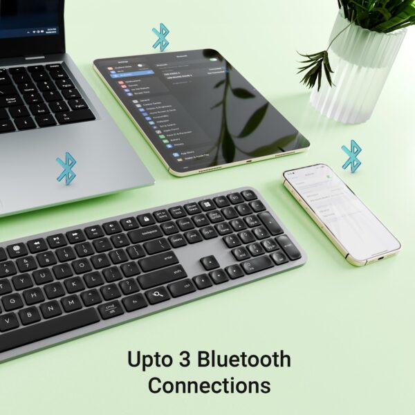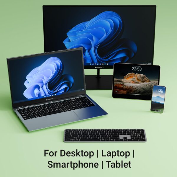 ZEBRONICS K5002MW Slim Wireless Keyboard with in-Built Battery, Copilot AI Key, Windows | Mac | iOS | Android, Scissor Switch, 3 Bluetooth + 2.4Ghz, 109 Keys, 13 Multimedia Keys, Type C Charging